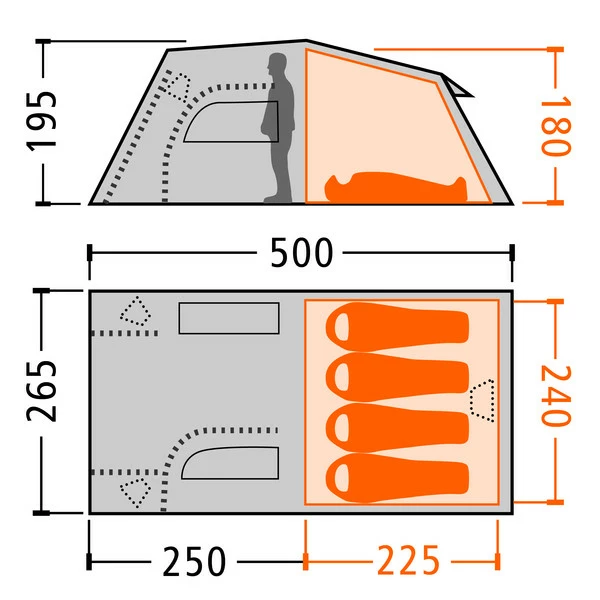 - Außen- und Innenzelt: 5040 g