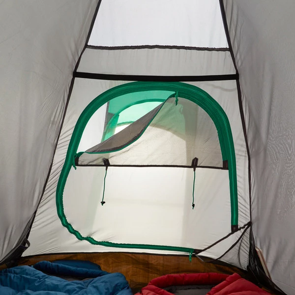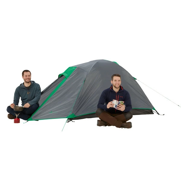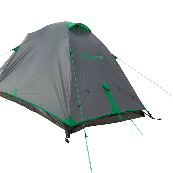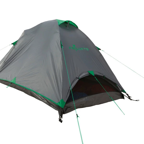 Günstiges Einsteigerzelt für zwei Personen, das sich ideal für erste Wanderungen und andere Outdooraktivitäten eignet. Der Innenraum ist großzügig bemessen und bietet zwei Personen ausreichend Platz.